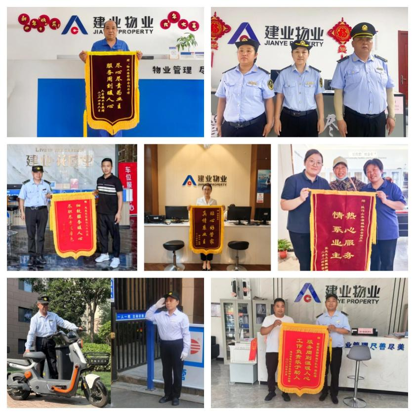 6月份,建業(yè)物業(yè)在管園區(qū)涌現(xiàn)出好人好事969件,其中收到錦旗287面、感謝信104封,其他致電表揚(yáng)等578次。