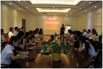 運(yùn)營管理部相關(guān)負(fù)責(zé)人針對客服類課題,進(jìn)行了專業(yè)的指導(dǎo)培訓(xùn)??偣矩?cái)務(wù)部經(jīng)理胡利平對營改增之后相關(guān)財(cái)務(wù)知識進(jìn)行解讀。最后,副總經(jīng)理張禮輝作總結(jié)性發(fā)言,張總強(qiáng)調(diào):行政專員作為上傳下達(dá)的中樞性崗位,一定要提高自身專業(yè)能力,服務(wù)并指導(dǎo)好各自管轄的服務(wù)中心。