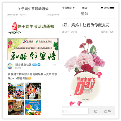 漯河、鄭州、洛陽等分公司將親子運(yùn)動(dòng)會(huì)、鄰里旅行、消夏音樂節(jié)、藝術(shù)團(tuán)義演等活動(dòng)引入社區(qū),倡導(dǎo)業(yè)主以全新理念暢享新型生活方式,感受鄰里共處的曼妙時(shí)光,體驗(yàn)建業(yè)物業(yè)獨(dú)具特色的社區(qū)文化。新鄉(xiāng)、焦作等分公司充分利用建業(yè)一家APP、微信等載體,實(shí)現(xiàn)線上線下的充分互動(dòng),更是贏得了業(yè)主的一致好評(píng),極大的提高了業(yè)主參與度和滿意度。而書法、讀書會(huì)、籃球、太極等等社群組織的組建、運(yùn)營和活躍,亦是本階段的重要成果。