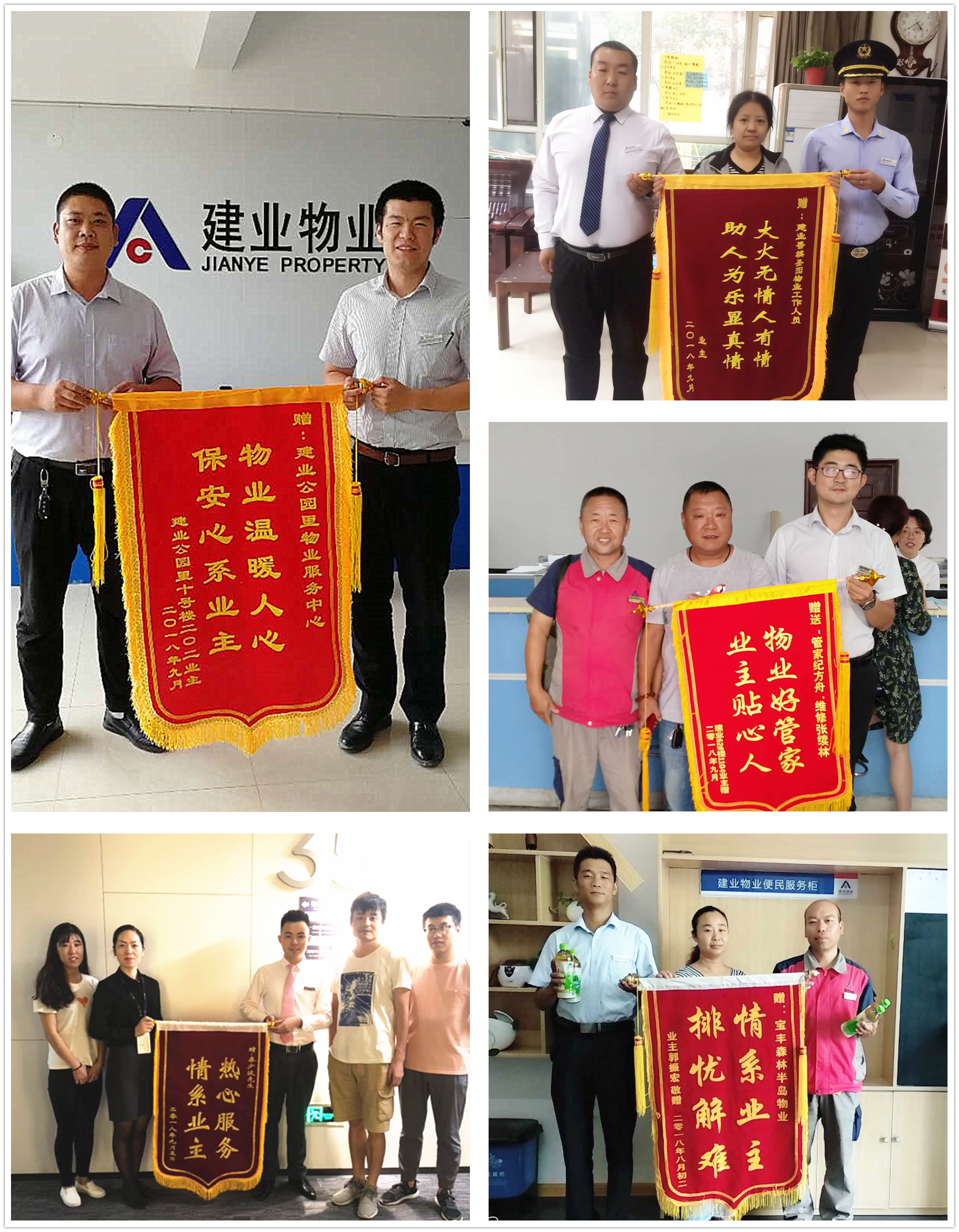 在這丹桂飄香的金秋九月,建業(yè)物業(yè)全體員工不僅持續(xù)地為業(yè)主打造舒適的人居環(huán)境,還積極主動地為業(yè)主提供至誠服務。本月,我們收到拾金不昧、技術高超、服務熱情、助人為樂等好人好事共224例,其中,收到錦旗75面、感謝信96封、致電感謝及其他53起。