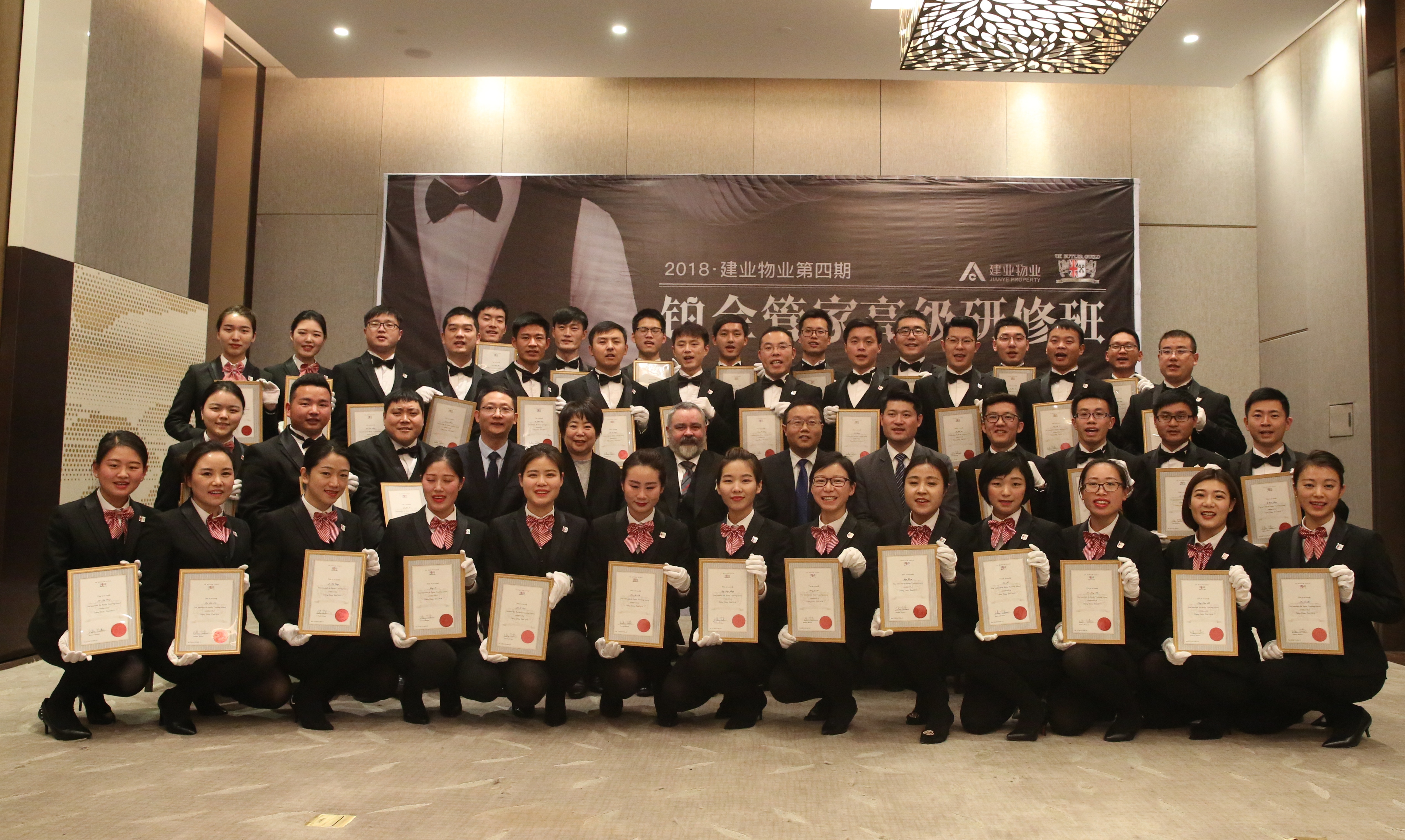 為提高服務品質(zhì),樹立行業(yè)標桿,建業(yè)物業(yè)第四期鉑金管家研修班于12月8日~19日在上街雅樂軒及開封鉑爾曼酒店成功舉辦。從全省十八個地市層層甄選而出的40名管家參加了此次培訓,并在順利通過考試后取得了由英國管家協(xié)會頒發(fā)國際鉑金管家證書和徽章。