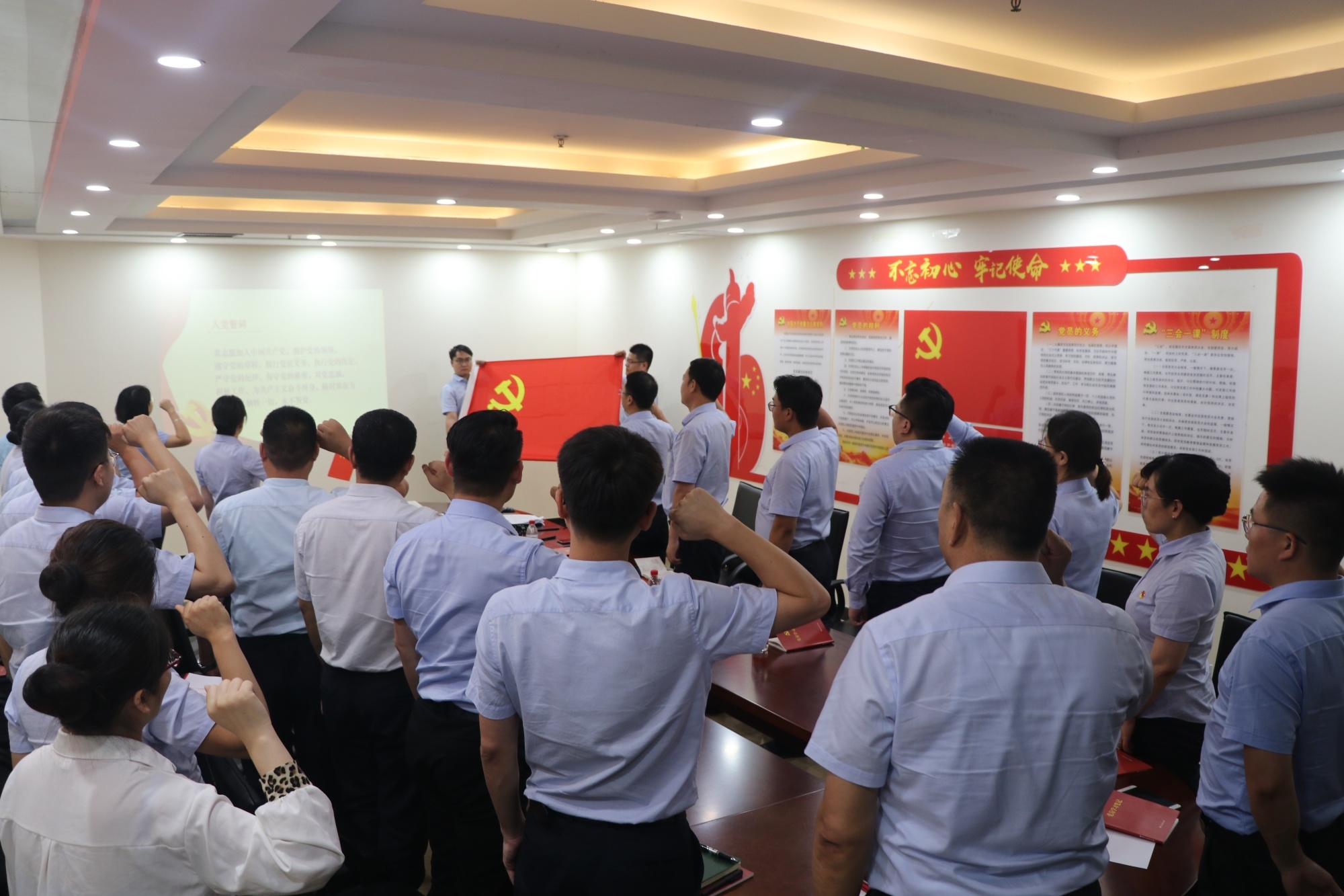 最后,在支部宣傳委員王宇同志的帶領下,大家重溫入黨誓詞,深化對黨的認識。