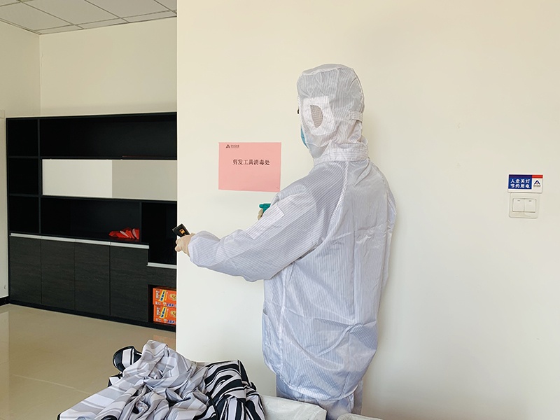 工具消毒。每位業(yè)主在理發(fā)之前,建業(yè)物業(yè)的工作人員都會對理發(fā)師和使用工具進行消毒,保障參與活動人員的安全。