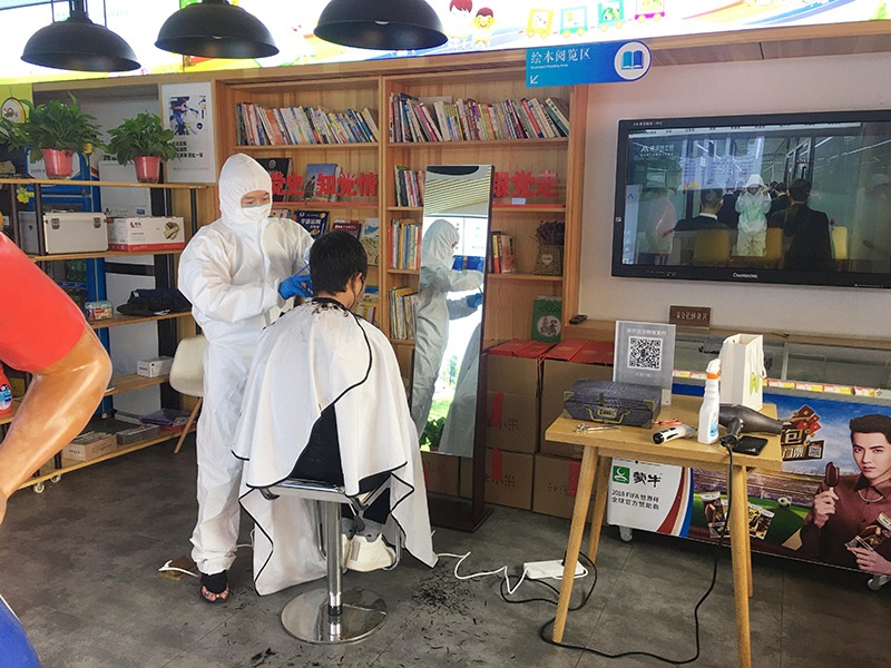 各個小區(qū)精心開辟活動場地,在活動開始前一天通知業(yè)主,并采取線上預(yù)約的方式,第二天按順序提前半小時通知業(yè)主到達指定場地,業(yè)主需要提前洗好頭發(fā),自帶濕毛巾,戴口罩。