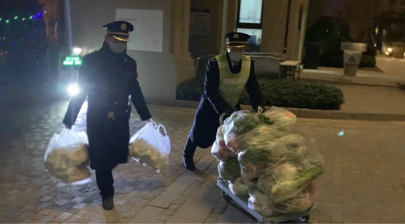 2月3日,綠色基地運(yùn)送蔬菜的車輛在路上遇上層層管制,要到晚上十一點(diǎn)左右才能送到鄭州市建業(yè)花園里小區(qū)。想到有部分業(yè)主提到自己家中已沒有存糧,貼心管家劉夢娜、值班師傅弓寶峰和禮兵閆剛便一直等到蔬菜送達(dá),小跑著去核對(duì)、確認(rèn)菜品,并將分裝好的蔬菜連夜悄悄地掛在業(yè)主家門把手上。