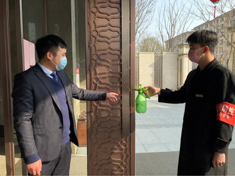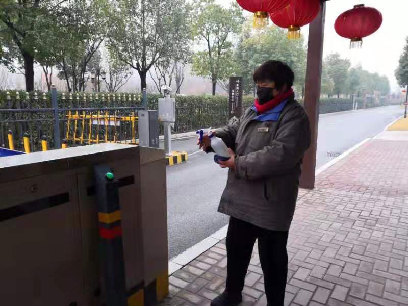 王新知每日背著沉重的消毒噴霧箱把園區(qū)的每個角落都消殺干凈;采買防護物資分發(fā)給業(yè)主;保證每個同事在作業(yè)的時候都做好自我保護;安撫同事情緒……