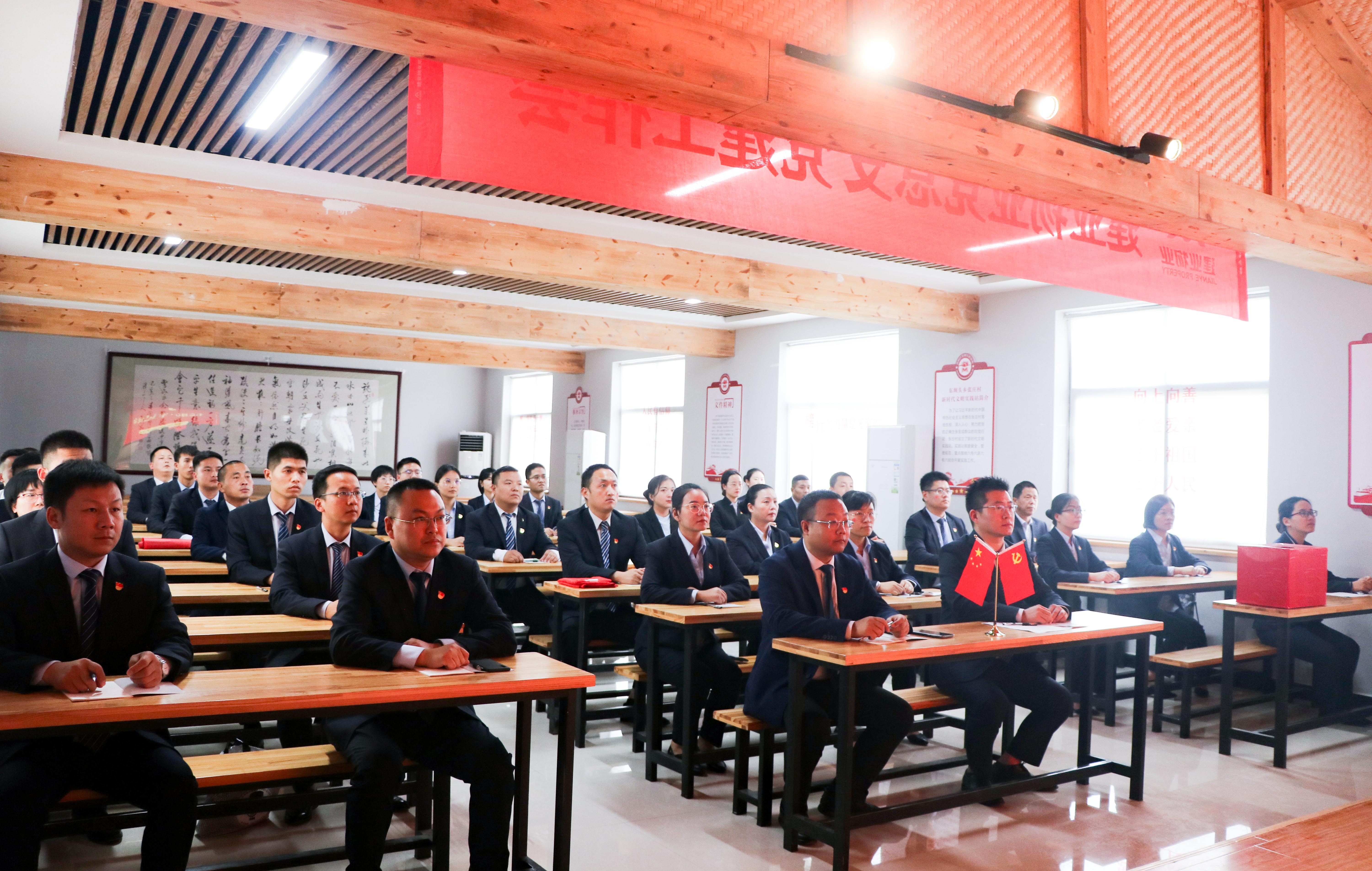 在莊嚴的國歌聲中,建業(yè)物業(yè)黨總支黨員代表大會在張莊村新的會議室開幕。