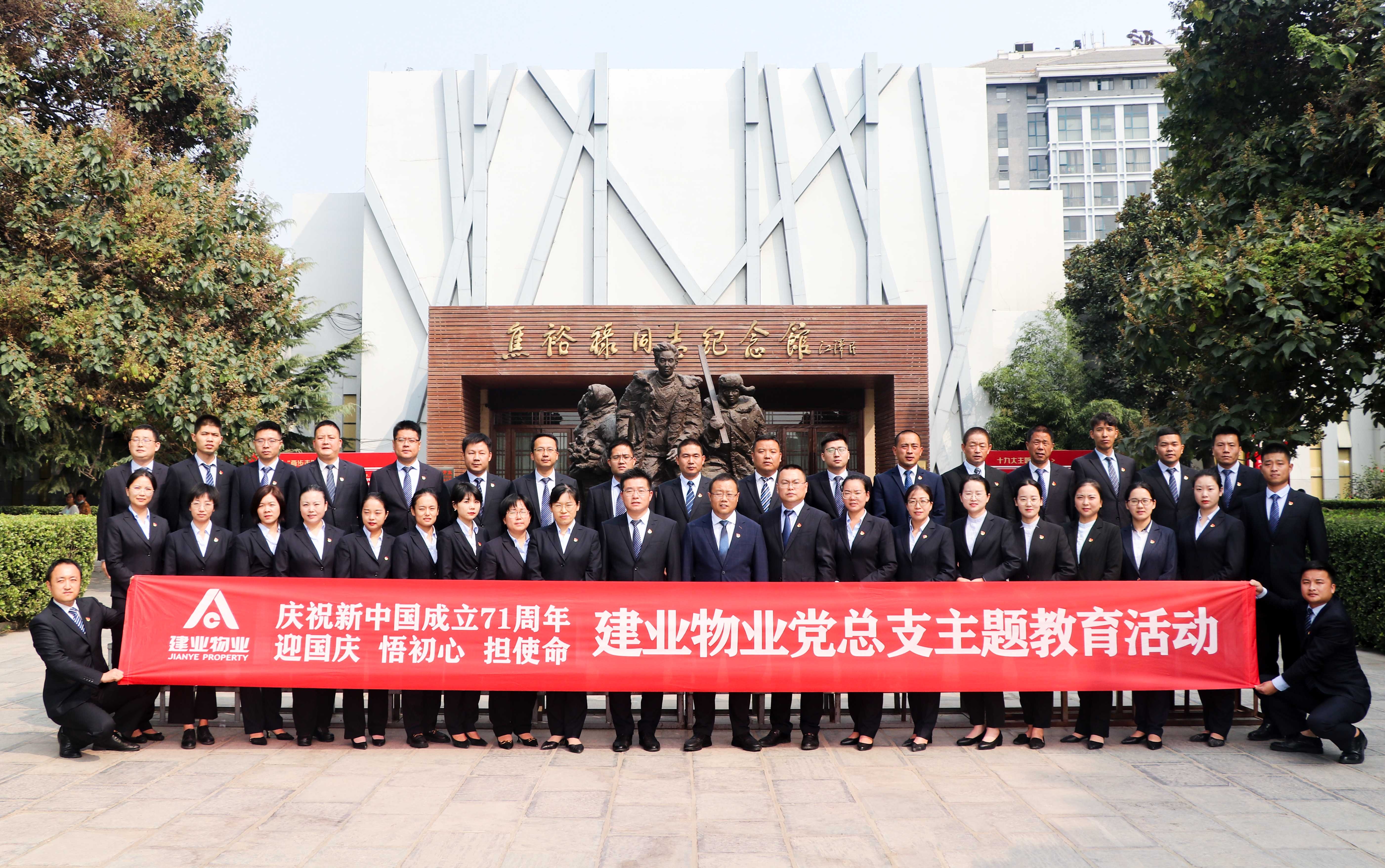 9月27日,在新中國成立71周年到來之際,建業(yè)物業(yè)黨總支組織黨員開展“迎國慶 悟初心 擔(dān)使命”主題教育活動。建業(yè)物業(yè)總經(jīng)理張禮輝、建業(yè)物業(yè)黨總支書記王志初、建業(yè)物業(yè)黨總支委員及黨員代表共計42人前往蘭考,學(xué)習(xí)和弘揚焦裕祿精神。