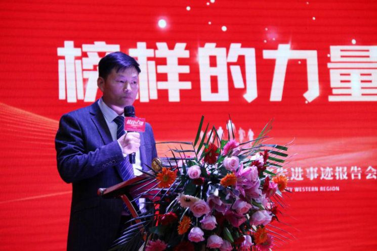 優(yōu)秀員工代表講述著自身事跡,帶領(lǐng)大家回顧這一年的艱辛與付出,字字懇切,說(shuō)到動(dòng)情之處,淚灑舞臺(tái)。數(shù)名員工家屬受邀來(lái)到現(xiàn)場(chǎng),用一束鮮花、一句問(wèn)候、一個(gè)擁抱,勾起臺(tái)下參會(huì)人員的思緒,現(xiàn)場(chǎng)掌聲雷動(dòng),大家備受鼓舞。會(huì)議最后,參會(huì)領(lǐng)導(dǎo)上臺(tái)為西部大區(qū)本次評(píng)選的16位榜樣代表授牌頒獎(jiǎng),號(hào)召全體員工向榜樣致敬。