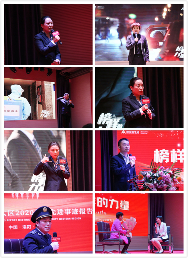 報(bào)告會(huì)上,七位優(yōu)秀員工代表的發(fā)言感動(dòng)人心、催人淚下。龍城片區(qū)管家主管姬麗麗用自身經(jīng)歷詮釋“堅(jiān)持”二字,疫情期間她不顧危險(xiǎn),走上街頭為業(yè)主采買(mǎi)救命藥;為了一份責(zé)任,洛陽(yáng)市場(chǎng)發(fā)展部經(jīng)理付朝娟奔波在凌晨一點(diǎn)、清晨六點(diǎn)的高速路上,帶領(lǐng)著團(tuán)隊(duì)用汗水和淚水繪制服務(wù)藍(lán)圖;洛陽(yáng)·世紀(jì)華陽(yáng)貼心管家李曉敏甘冒風(fēng)險(xiǎn),始終守護(hù)業(yè)主安全,用一顆真心、一片真情換來(lái)業(yè)主滿意,連續(xù)三年收費(fèi)率100%;洛陽(yáng)·高爾夫花園貼心管家王閃閃,在日常服務(wù)中不斷傾注真情,用專(zhuān)業(yè)感動(dòng)業(yè)主,用真心贏得尊重;洛陽(yáng)·鼎城門(mén)崗禮兵王四干在疫情期間主動(dòng)請(qǐng)纓,用善意的謊言隱瞞家人,毅然決然奔赴抗疫一線;洛陽(yáng)·高爾夫花園禮兵中隊(duì)長(zhǎng)王利萌在面對(duì)小區(qū)輸入型確診病例時(shí),用一句“我是隊(duì)長(zhǎng),我上!”的豪言擔(dān)起消殺重任;盡管愛(ài)人癱瘓?jiān)诖?,但為了靈寶森林半島全體業(yè)主安全,保潔員杜便魚(yú)義無(wú)反顧擔(dān)起園區(qū)重任,一句“咋不怕?我也怕,但是為了業(yè)主,我要干”,是她最樸實(shí)無(wú)華的表達(dá)。