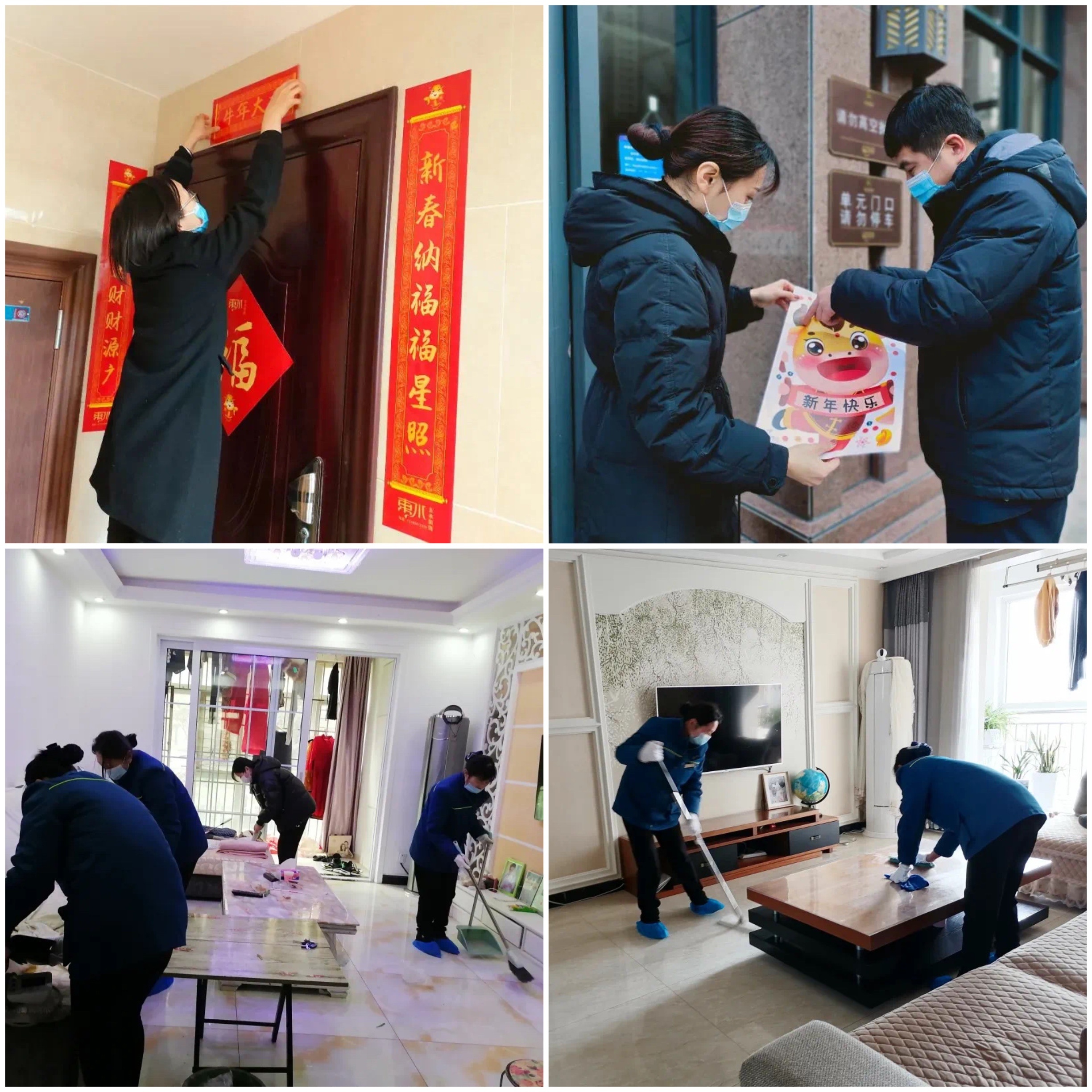 這個新年,有許多業(yè)主選擇了在工作地過年。對于沒有回家的業(yè)主,建業(yè)物業(yè)組織了入戶清潔服務(wù),從張貼春聯(lián)到清潔室內(nèi)的角角落落,讓業(yè)主不能回家也能除塵迎新,納足一年的福氣!