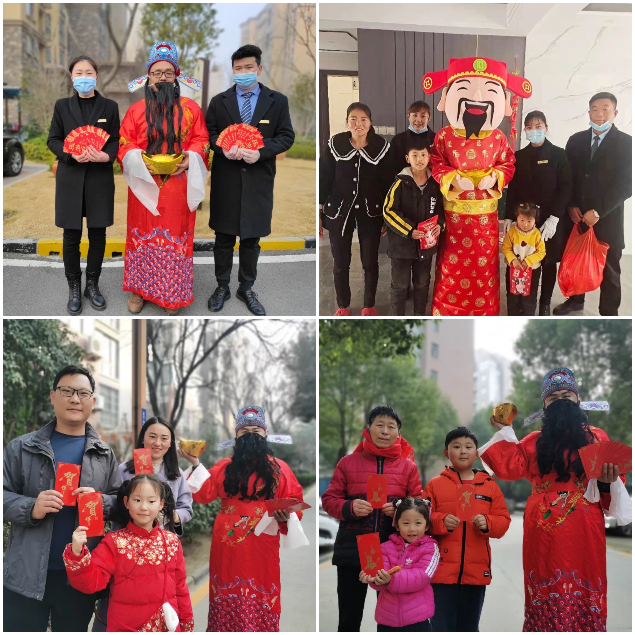 財神迎到家,日子越發(fā)達(dá)。大年初五這天,建業(yè)物業(yè)的工作人員扮起了財神,并準(zhǔn)備了小紅包、糖果、零食等禮物,為業(yè)主送福氣。不少業(yè)主看到后,紛紛與物業(yè)人扮演的財神合影,想要沾點喜氣,整個小區(qū)都充盈著歡樂的笑聲。