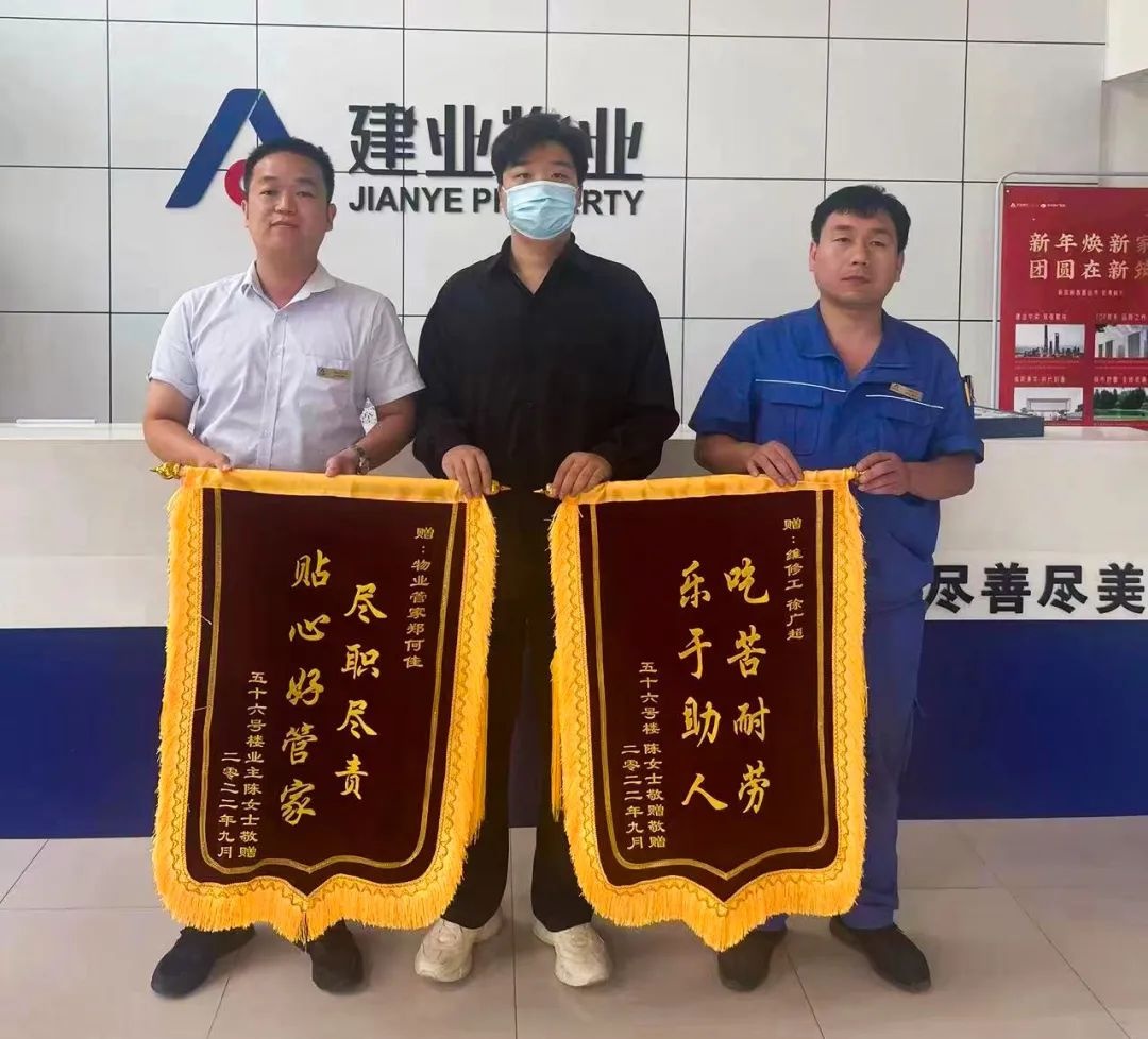 10月份,建業(yè)物業(yè)在管項(xiàng)目共涌現(xiàn)出好人好事892件,其中收到錦旗159面,感謝信94封,其他致電表?yè)P(yáng)640次。