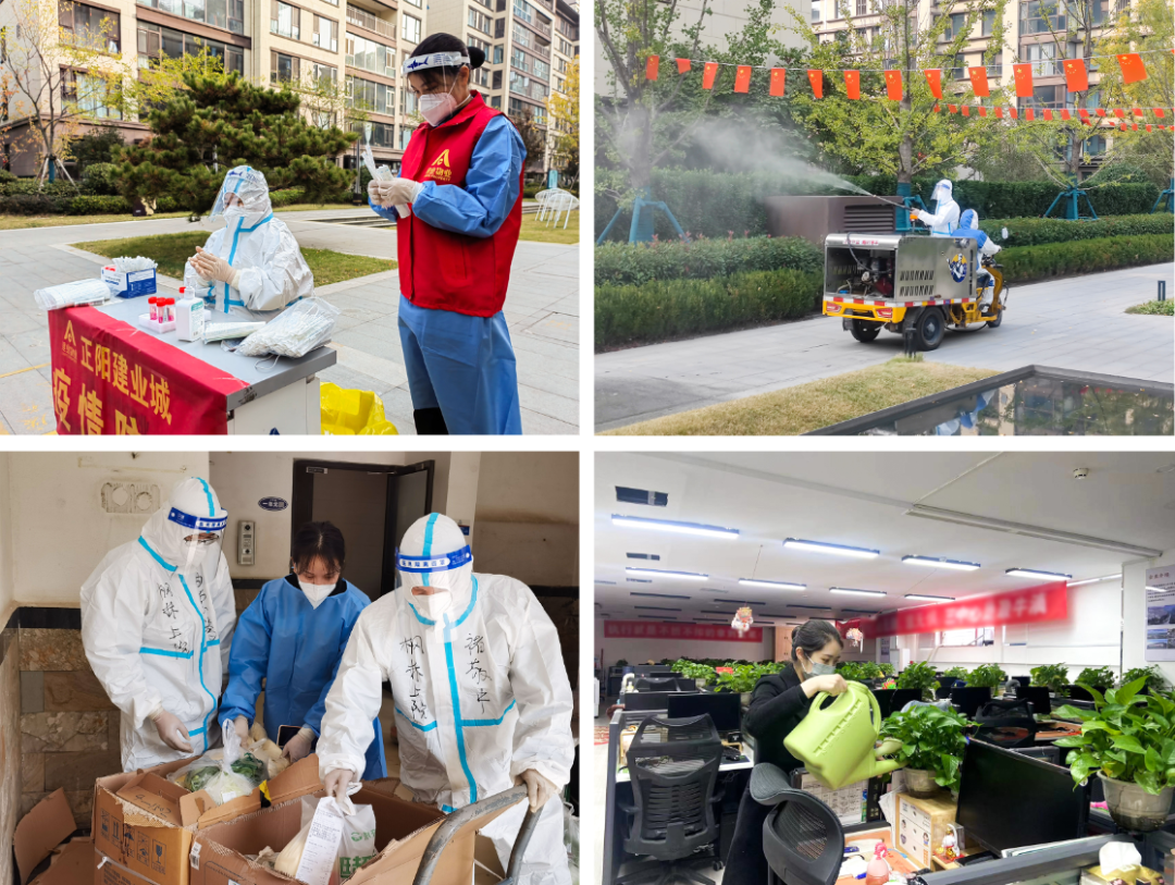 疫情期間,建業(yè)物業(yè)在管的800多個(gè)項(xiàng)目,成千上萬名物業(yè)人克服萬難返回崗位,日夜堅(jiān)守園區(qū),承擔(dān)起防疫和保障業(yè)主生活的重任。為保障各園區(qū)消毒工作做到位,建業(yè)物業(yè)人每天背負(fù)著30多斤的消毒藥桶對(duì)入戶單元、電梯轎廂、地下車庫等各個(gè)角落全面消殺,日行超過20000步,不漏過一處死角;為了保障小區(qū)全體業(yè)主的正常生活需求,建業(yè)物業(yè)人代購代送各類生活物資,每天工作時(shí)長達(dá)14個(gè)小時(shí)甚至更多;不僅如此,硬核防疫期間,建業(yè)物業(yè)仍持續(xù)提供暖心服務(wù),代小業(yè)主們?nèi)W(xué)校領(lǐng)取學(xué)習(xí)資料、為封控在外的業(yè)主照顧綠植或?qū)櫸?、為慢性病患者購買日常用藥、幫業(yè)主代充燃?xì)饪?.....細(xì)致、周到的服務(wù)讓每一位有需求的業(yè)主都能感受到貼心、暖心。