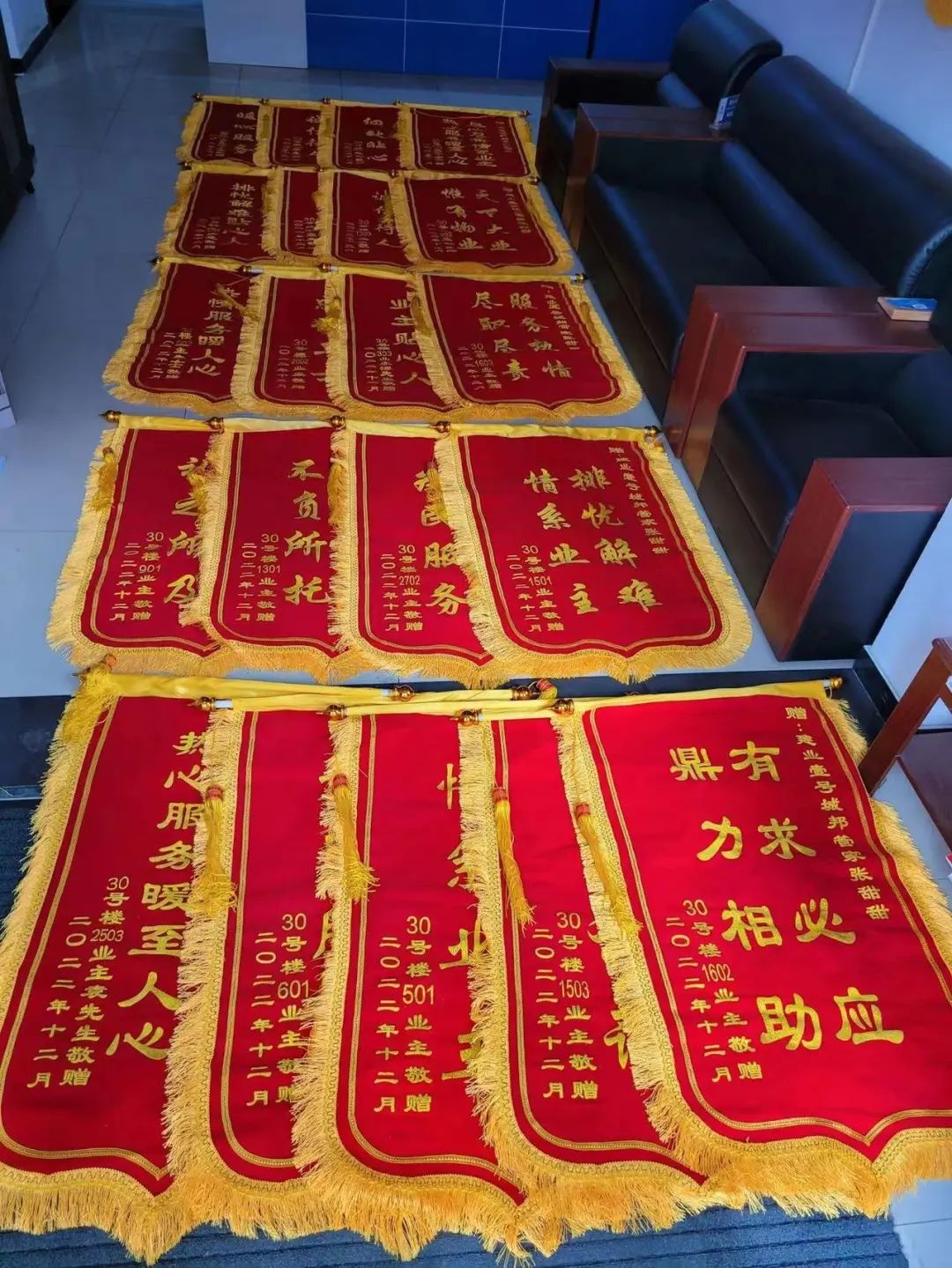 這一天,被人群和錦旗包圍著的張?zhí)鹛鹧壑幸蛳矏偤图娱W動著光芒,平日里熱情大方的她在熟悉的業(yè)主面前顯得有些拘謹。面對著業(yè)主們豎起的一個個大拇指,一句句夸獎的言辭,一面面代表著榮譽的錦旗,她知道,自己只有更加努力,才能不辜負業(yè)主們的肯定和信任。