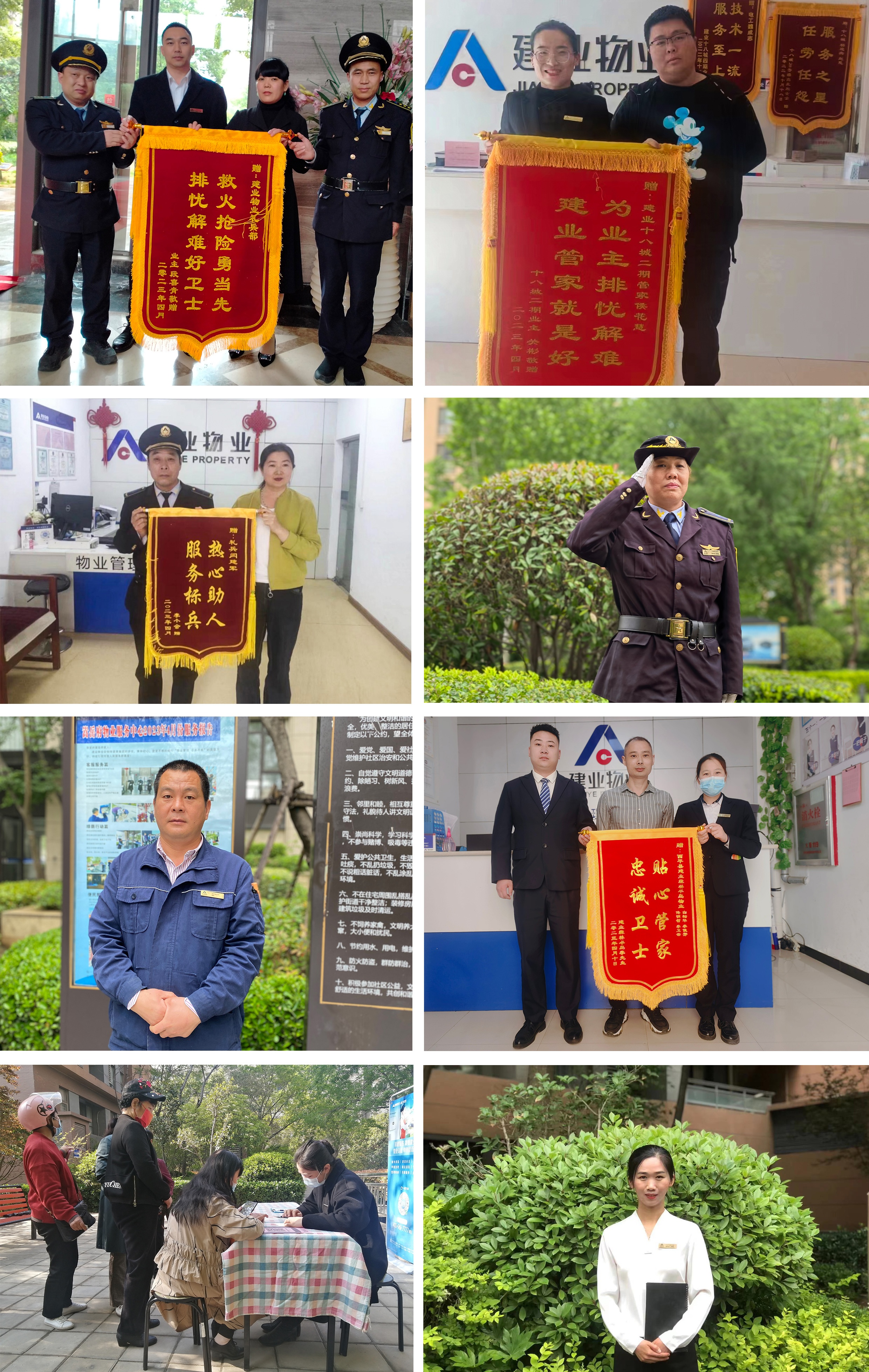 4月份,建業(yè)物業(yè)在管園區(qū)涌現(xiàn)出好人好事992件,其中收到錦旗224面、感謝信91封、其他致電表揚等677次。