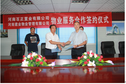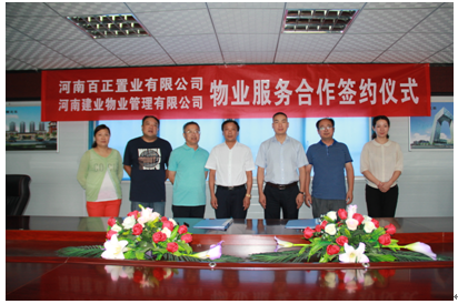 2016年6月29日河南建業(yè)物業(yè)管理有限公司與河南百正置業(yè)有限公司成功簽署物業(yè)顧問服務戰(zhàn)略合作協(xié)議。