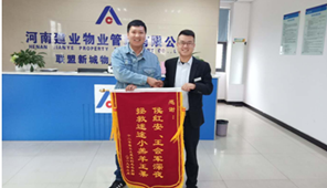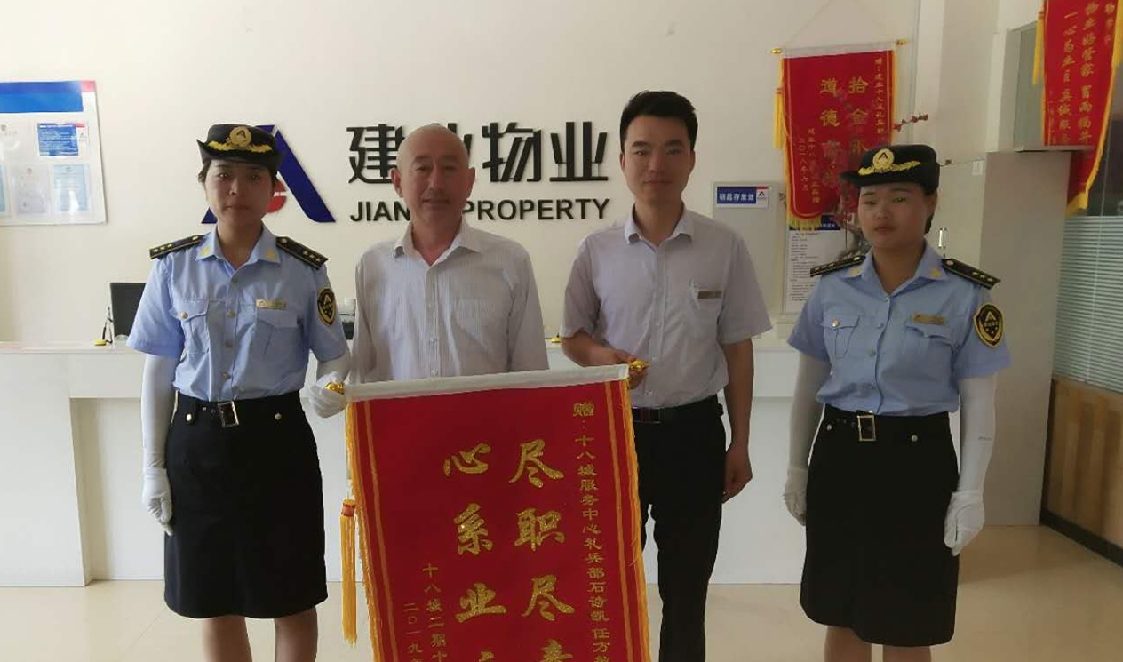 六月,艷陽如火,蟬鳴如潮。建業(yè)物業(yè)人滿懷如火的熱情,用服務(wù)為業(yè)主送來絲絲舒暢。六月份全省在管小區(qū)涌現(xiàn)出好人好事共計(jì)284例,其中收到錦旗65面,表揚(yáng)信127封,來電感謝及其他92例。 鏡頭一: 6月2日9時(shí)許,平頂山·十八城貼心管家王明濤接到7號樓尹女士的緊急電話,稱自己的丈夫腿受傷已無法動彈,等不及救護(hù)車過來了。王明濤和禮兵中隊(duì)長白洋洋、巡邏禮兵安東火速趕到業(yè)主家中,一邊保護(hù)王先生腿部不再受到二度傷害,一邊將王先生背下樓并送往醫(yī)院。因就診及時(shí),病人病情得到及時(shí)控制,并無大礙。 次日,尹女士特地讓孩子代表夫婦二人送來一面印有“智慧果敢加神速,為業(yè)主排憂解難”字樣的錦旗,以此表達(dá)對建業(yè)物業(yè)的感激之情。 鏡頭二