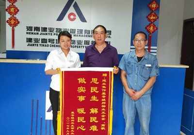 金秋十月,在這象征收獲的季節(jié),建業(yè)物業(yè)全體員工如家人一般貼心守候在業(yè)主的身旁,帶來了許多溫暖和感動。十月,我們收到拾金不昧、技術(shù)高超、服務(wù)熱情、助人為樂等好人好事共32件,其中錦旗有11面,感謝信有10封,致電感謝有11例。 鏡頭一: 10月初的一天早上,洛陽·世紀(jì)華陽C小區(qū)10號樓2單元的老兩口起床后,發(fā)現(xiàn)家里到處是積水?;艁y之中,他們匆匆撥打了該單元維修工徐鵬飛師傅的電話。徐師傅當(dāng)即派值班的維修工上門排查,并迅速處理了發(fā)生故障的角閥,還在第一時間聯(lián)系保潔人員幫老人清理積水,及時解決了老人家中的問題。 鏡頭二: 10月11日下午五點(diǎn)左右,漯河·森林半島門崗禮兵李柯發(fā)現(xiàn)業(yè)主的車因雨天濕滑,失控掉進(jìn)水系。他立即通知了禮兵隊長,并和其他臨時加班的禮兵一起趕